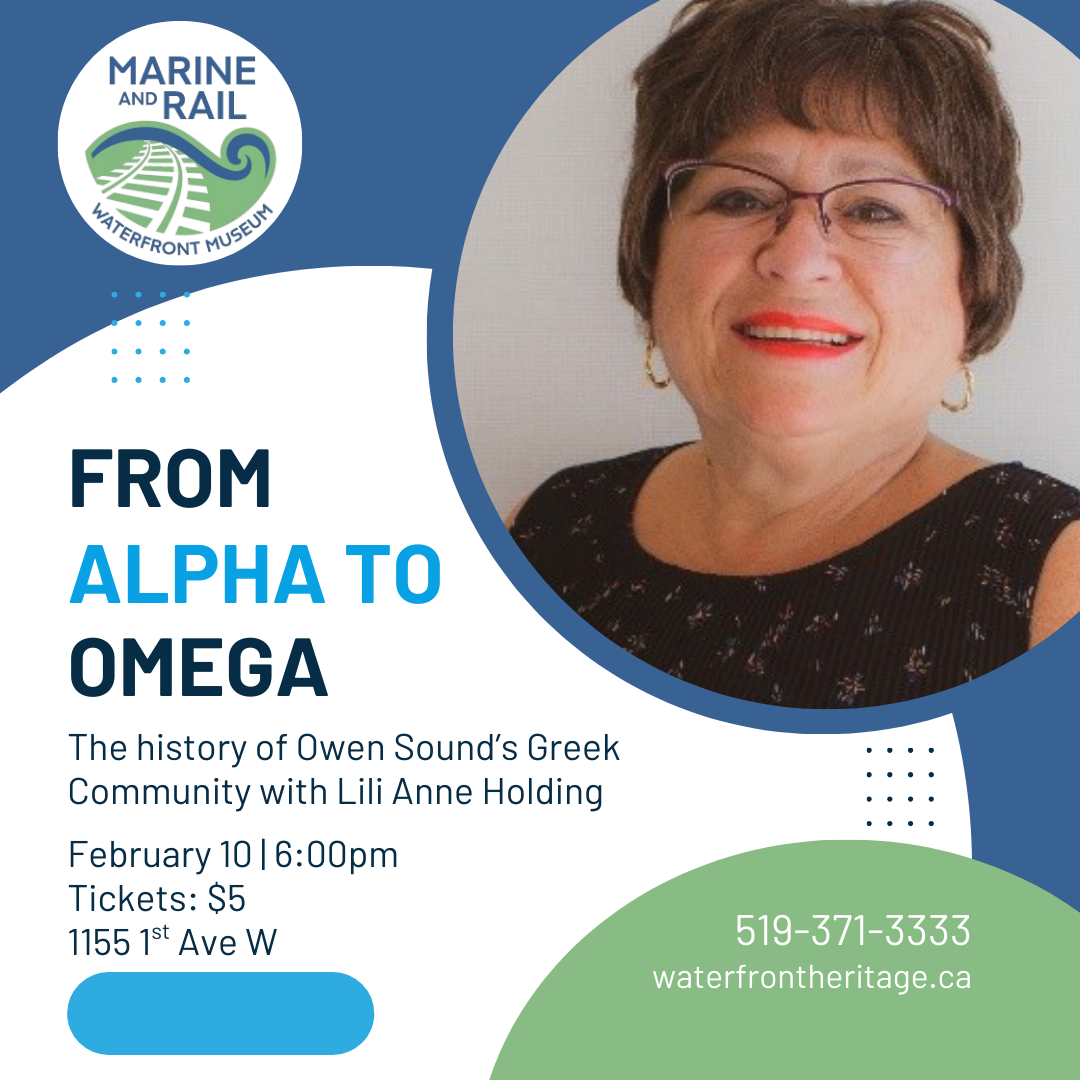 The presentation of “Alpha to Omega: the History of Owen Sound’s Greek Community has been postponed to February 10th sue to weather conditions.